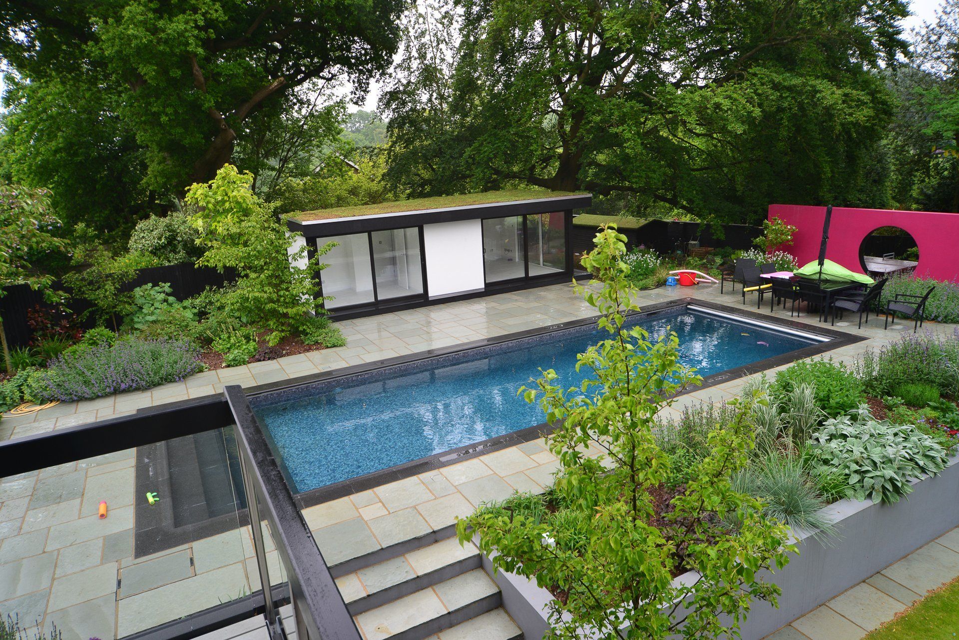 The garden studio is a space where you can enjoy the benefits of having a pool without having to worry about carrying towels around the house. It’s a perfect solution for those who want to enjoy the convenience of a pool without the hassle of having to go outside to use it.
